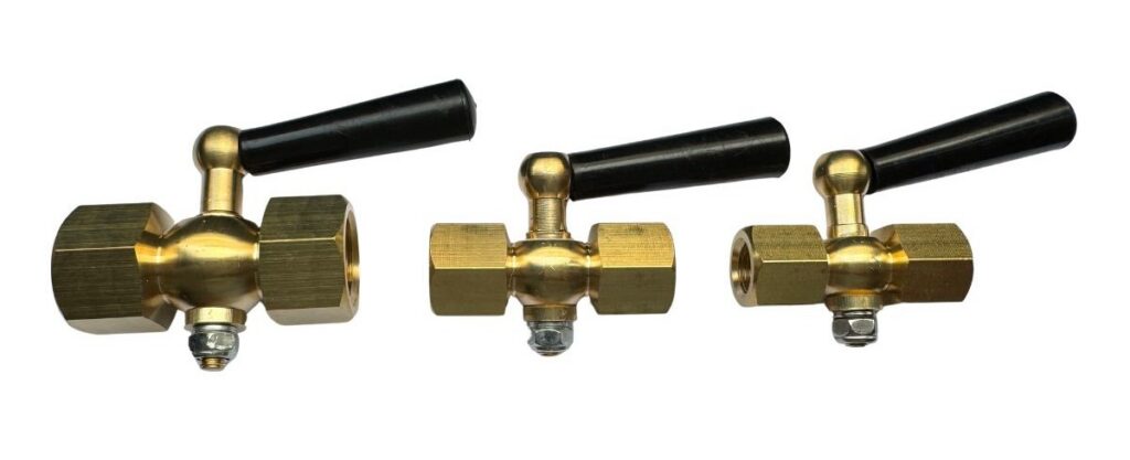 CMT Engineering supplies gauge cocks made from unpolished brass with a hard black plastic handle. They have a three-way position for locking, discharging and venting.